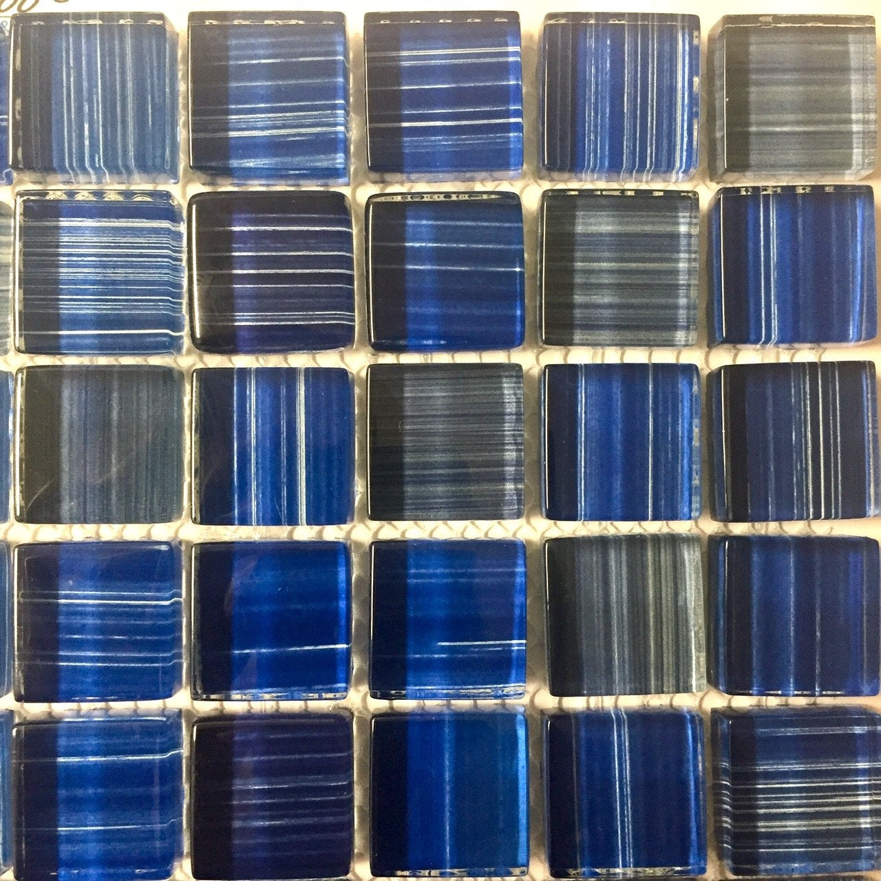 Glass tile - gold blue brush 1" x 1" - 8csbvv324