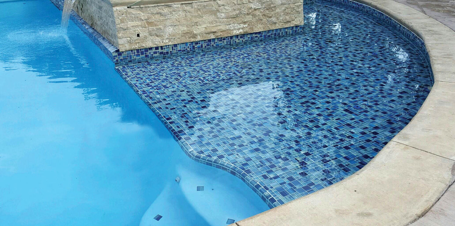 Glass tile trim - caribbean blue mixed - trim-gw8m2348b11
