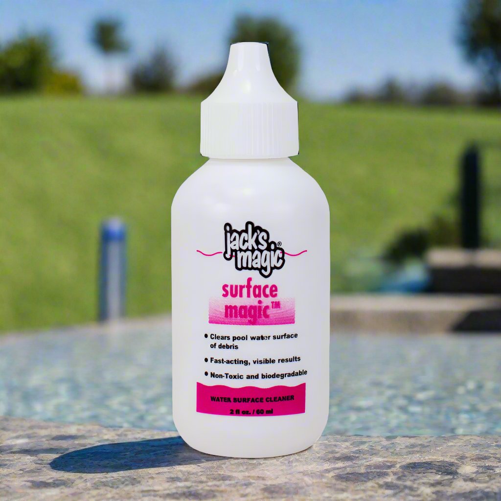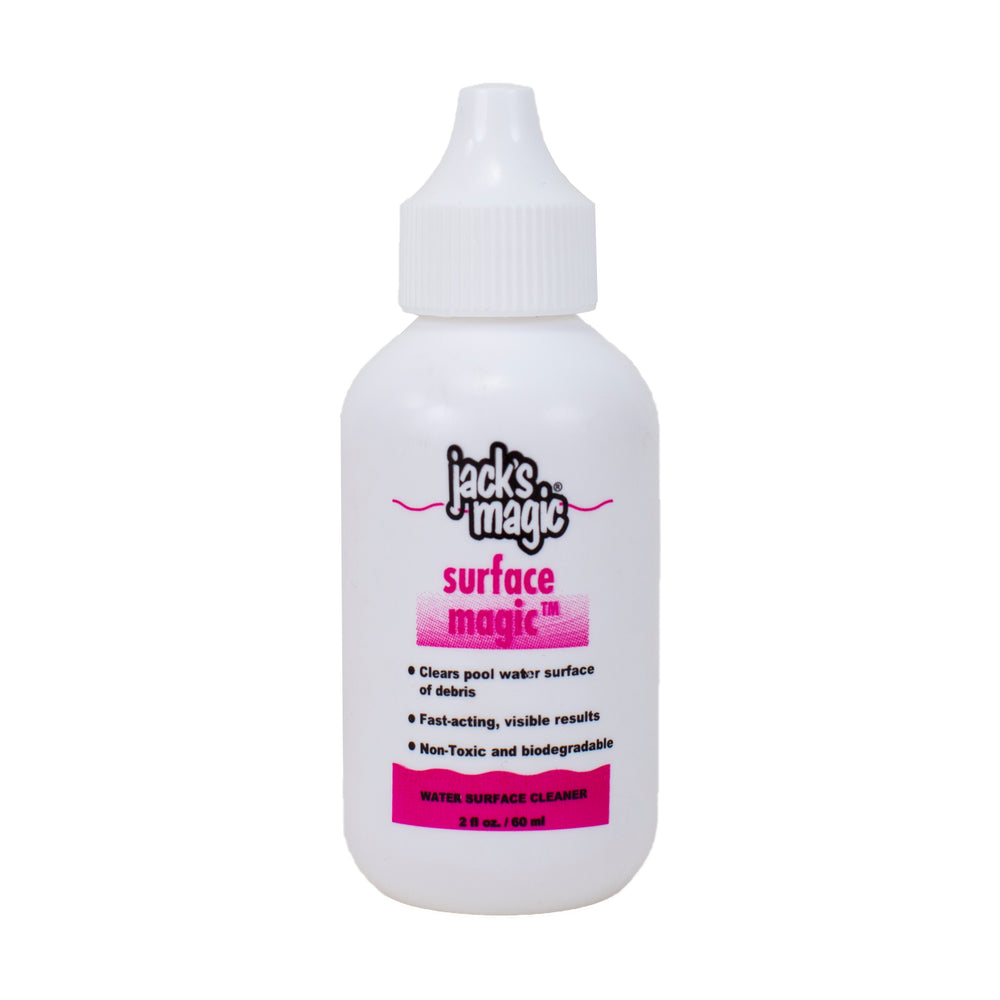 Jack's Magic Surface Cleaner is the perfect solution for removing annoying floating debris from your pool, such as grass clippings, leaves, dirt, and other contaminants. This powerful cleaner eliminates the need for manual skimming, saving you time and frustration. With its easy-to-use liquid formula, just 2 drops are enough to quickly restore your pool's sparkling clarity. Versatile and effective, it can even be used in lakes and rivers. Trust in Jack's Magic, a leading innovator in pool chemicals, for a reliable and efficient surface cleaner.