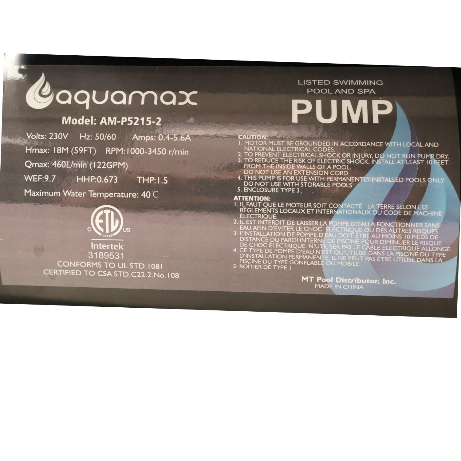 The Aquamax Pro Series Pool Pump VS 1.5 Hp - P5215-2 is the ultimate choice for pool owners seeking a powerful, efficient, and durable pool pump. Its advanced features and robust construction ensure your pool remains in optimal condition, providing you with a safe and enjoyable swimming environment. Upgrade to the Aquamax Pro Series today for unmatched performance and efficiency!